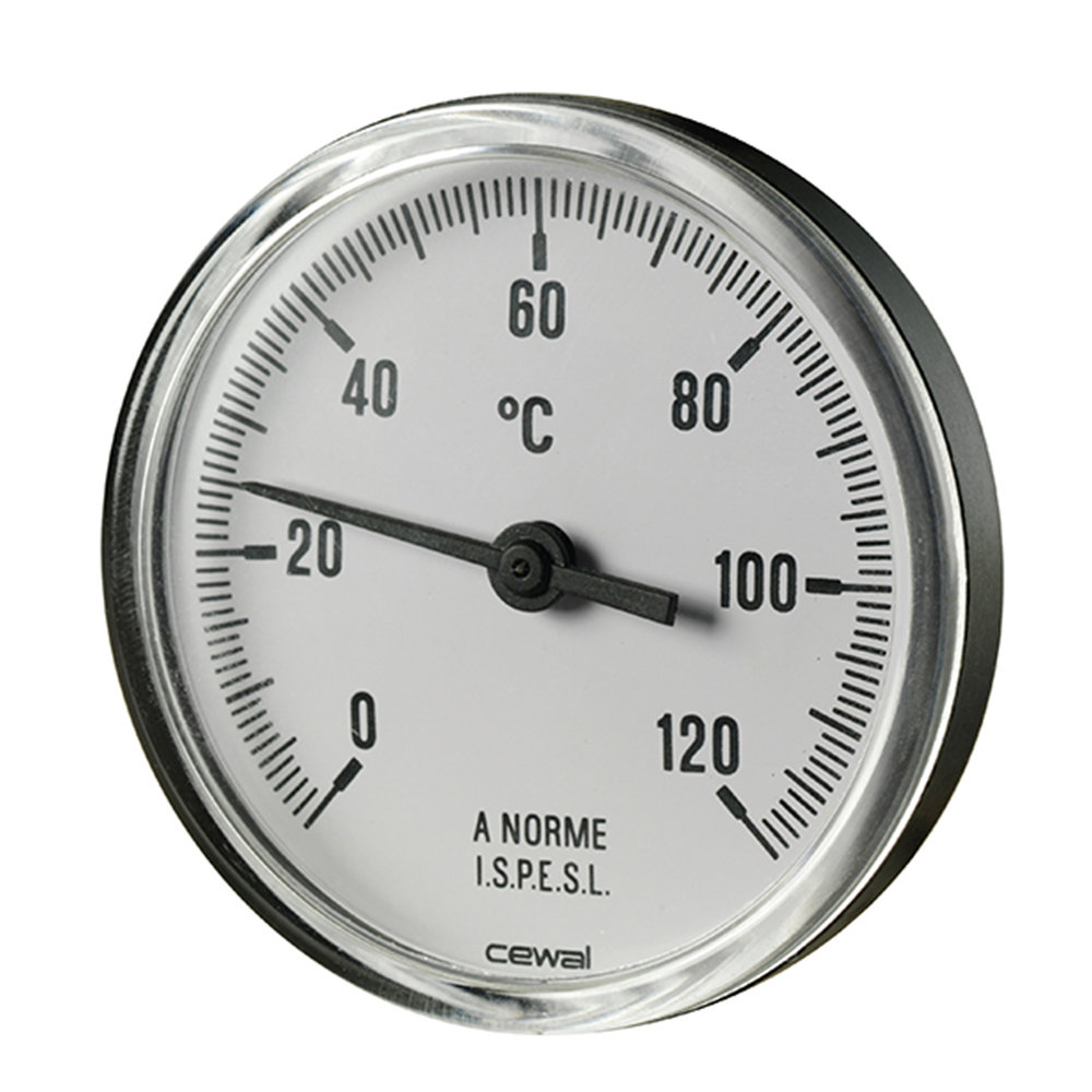 TERMOMETRO CON ATTACCO POSTERIORE SCALA 0-120° Ø 80 MM . GAMBO 50 MM . ATTACCO 1/2"M