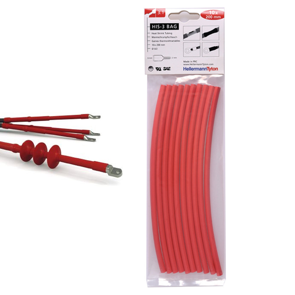 GUAINA TERMORESTRINGENTE 3:1 ROSSO 6/2 HIS-3 BLISTER 10 PZ HELLERMANNTYTON