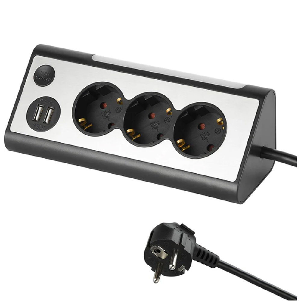 MULTIPRESA AD ANGOLO NERA CON 3 PRESE SCHUKO E 2 USB ELECTRALINE