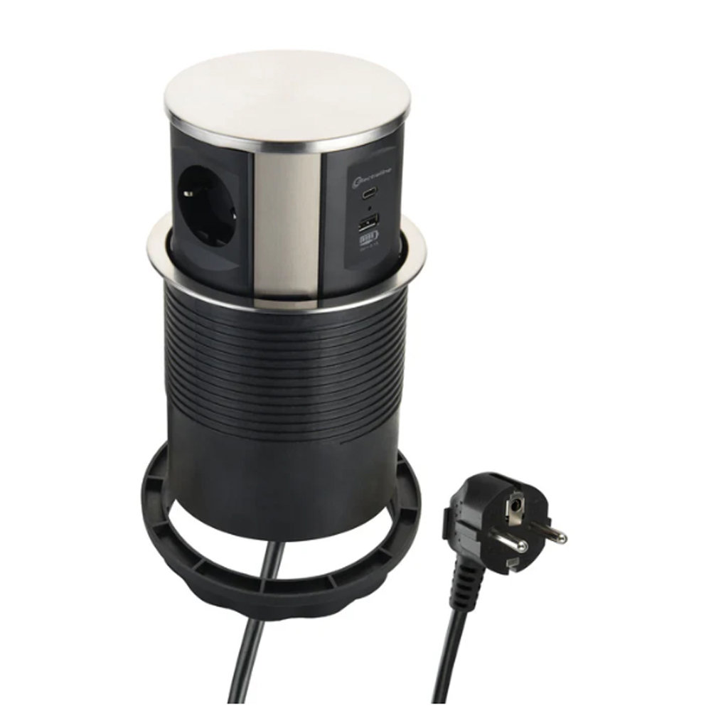 MULTIPRESA POP-UP DA SCRIVANIA NERO/ARGENTO CON 3 PRESE SCHUKO E 2 USB ELECTRALINE