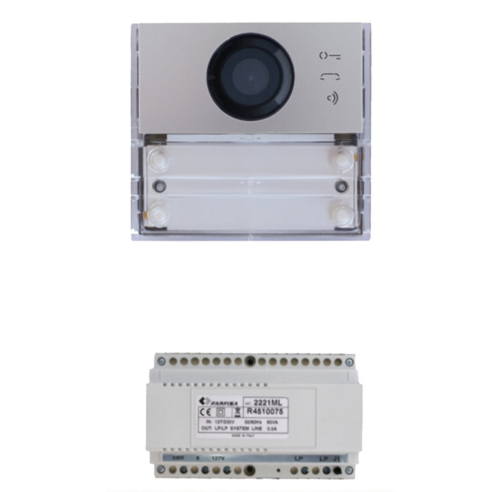 KIT BASE IMPIANTO COMPOSTO DA UN POSTO ESTERNO VIDEO SERIE ALBA ED ALIMENTATORE 2221MQ FARFISA