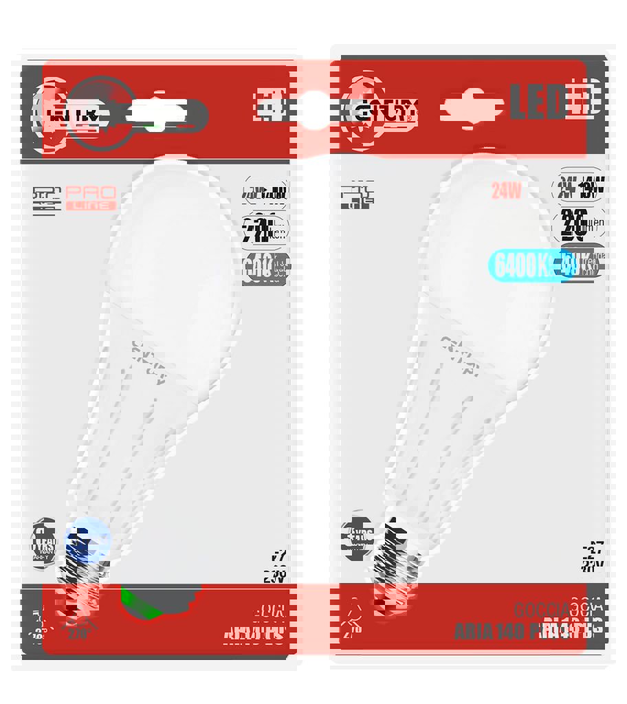 LAMPADA LED E27 LUCE FREDDA 6400K GOCCIA ARIA PLUS 24W CENTURY