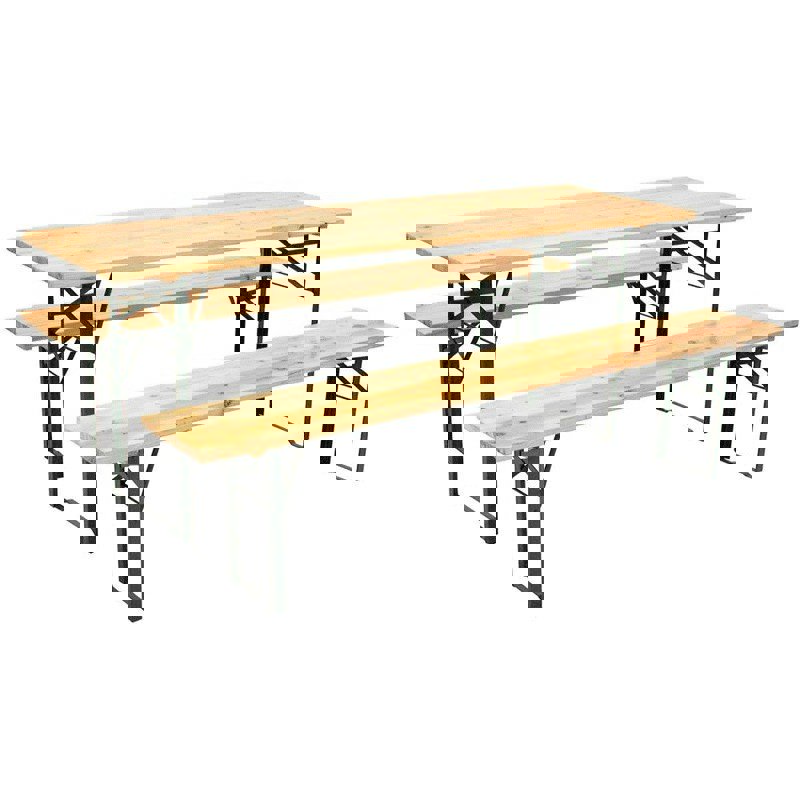 SET BIRRERIA IN LEGNO RETTANGOLARE TAVOLO 200x80 CM + DUE PANCHE