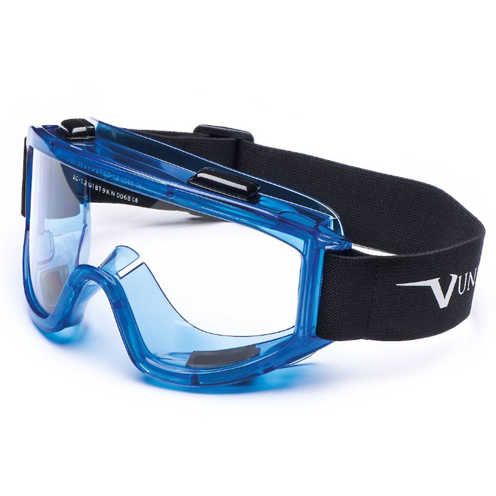 - OCCHIALI A MASCHERA PROTETTIVA AREAZIONE INDIRETTA LENTE TRASPARENTE ANTIGRAFFIO E MONTATURA BLU UNIVET