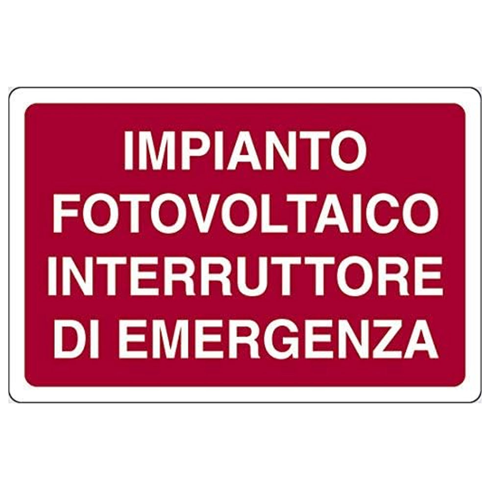 CARTELLO DI SICUREZZA IMPIANTO FOTOVOLTAICO INTERRUTTORE DI EMERGENZA 30x20 CM