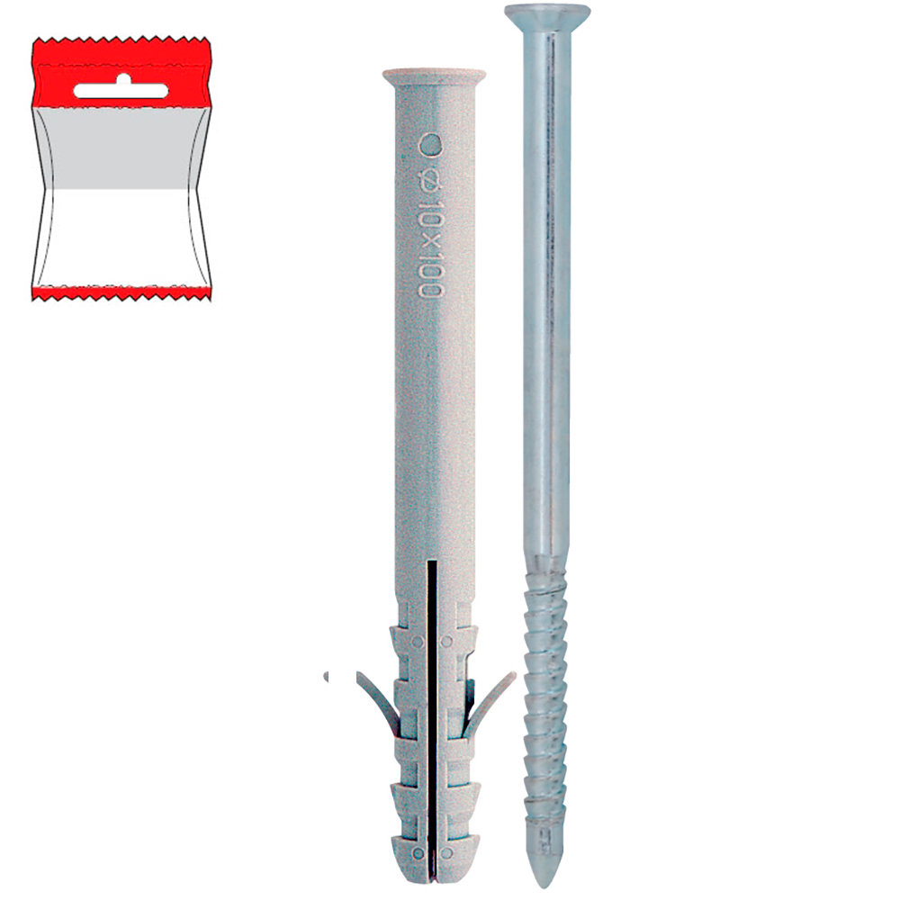 TASSELLO PROLUNGATO NYLON Ø 8x60 MM CON VITE BLISTER 10 PZ