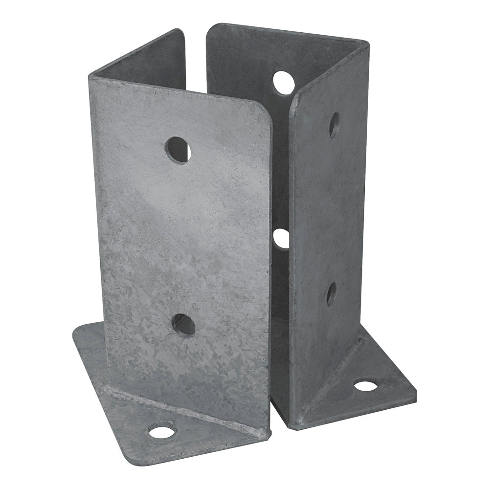- COPPIA PORTAPILASTRI ANGOLARI A PAVIMENTO IN ACCIAIO ZINCATO PER TRAVI IN LEGNO 105x105x200 MM