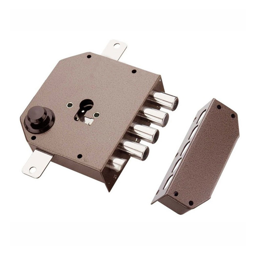 - SERRATURA AD APPLICARE TRIPLICE PREDISPOSIZIONE PER CILINDRO EUROPEO A 4 CATENACCI CON 1/2 GIRO SENZA ASTE VERNICIATO DX MOTTURA