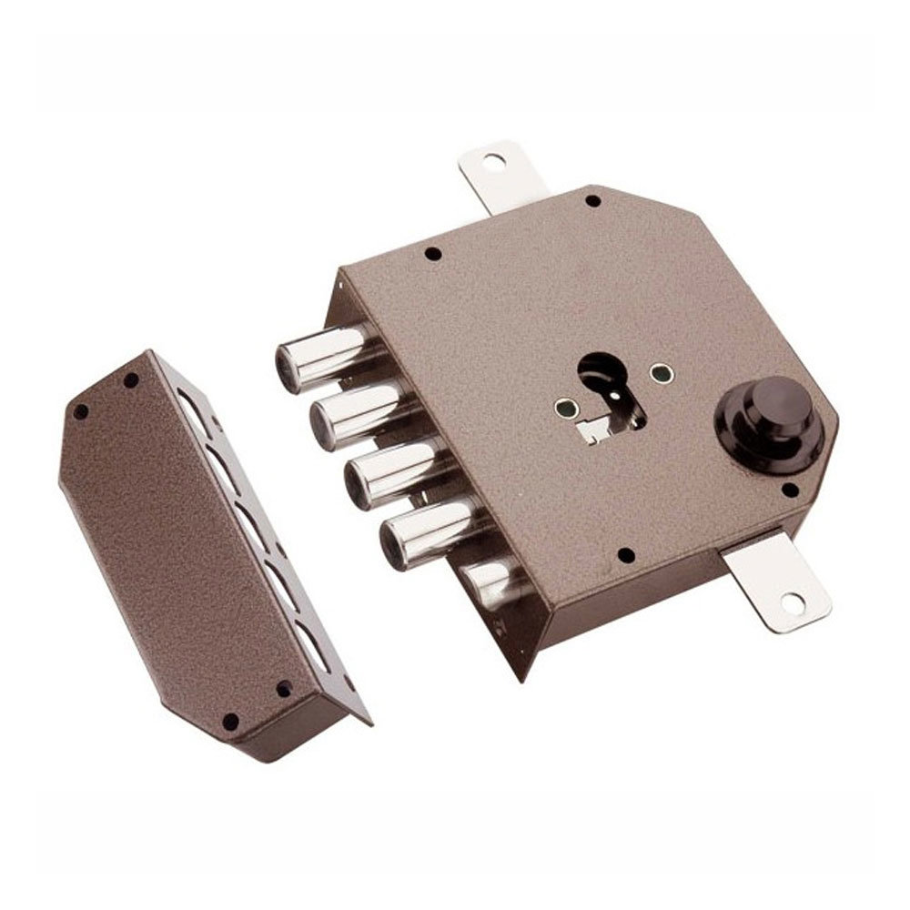 - SERRATURA AD APPLICARE TRIPLICE PREDISPOSIZIONE PER CILINDRO EUROPEO A 4 CATENACCI CON 1/2 GIRO SENZA ASTE VERNICIATO SX MOTTURA