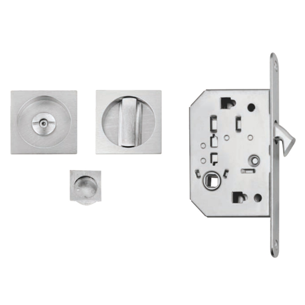 SERRATURA IN KIT PER PORTA SCORREVOLE MODELLO 3667R WC CON TRASCINATORE QUADRO CROMO SATINATO FIMET